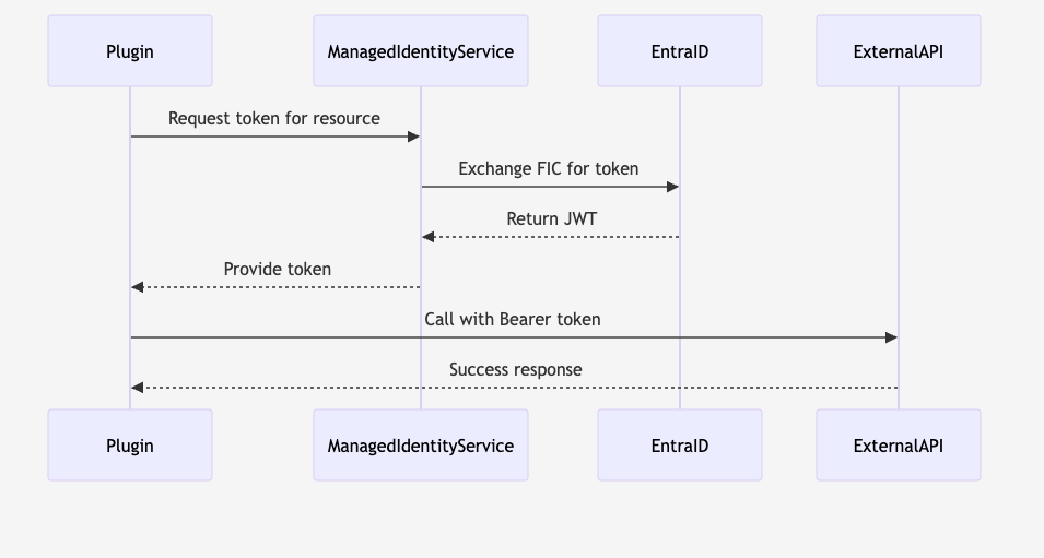 The FIC links Microsoft Entra ID, your plugin, and the Managed Identity.