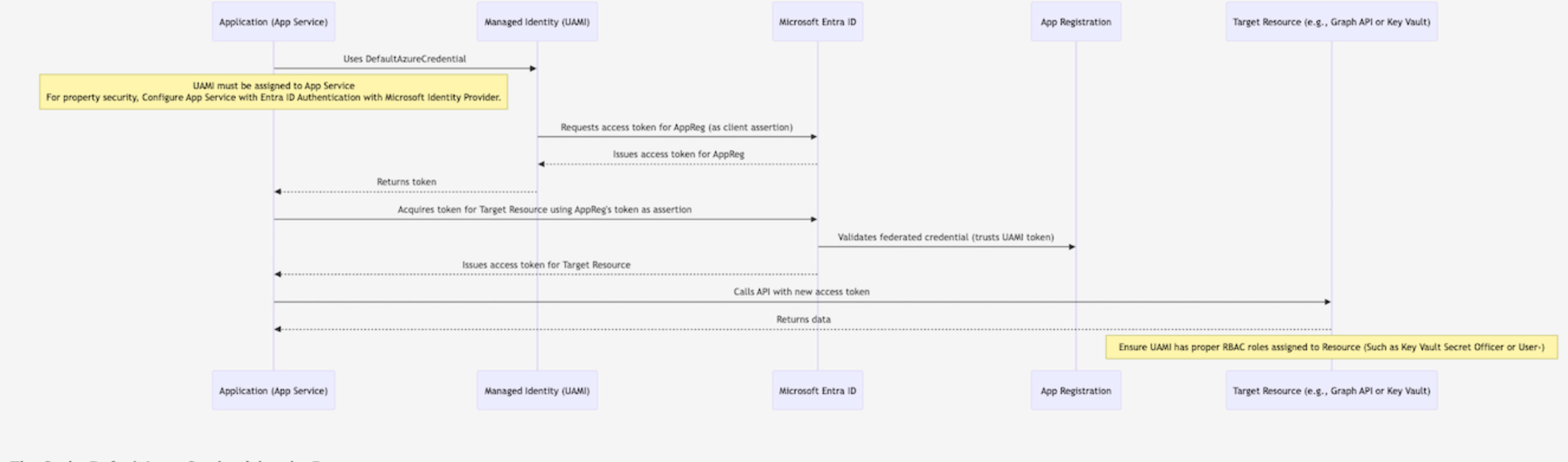 The best part? The Azure SDKs are designed to handle this complexity for you! Your application will automatically detect that it’s running in an environment with a managed identity and use it to authenticate.